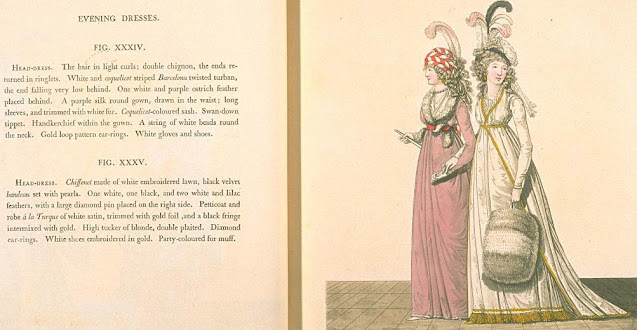 A final note about that mezzotint print above. Do you see the shorter hair the women are sporting? Plus that both women have hair that lies in soft waves rather than all-out curls? By 1797 big hair was bye-bye, that's one message, and second, that not everyone strove to sport little curly tops. I see this in other Lewis Walpole prints, bye the bye. If you use the link above and browse the library's holdings, you can see for yourself.